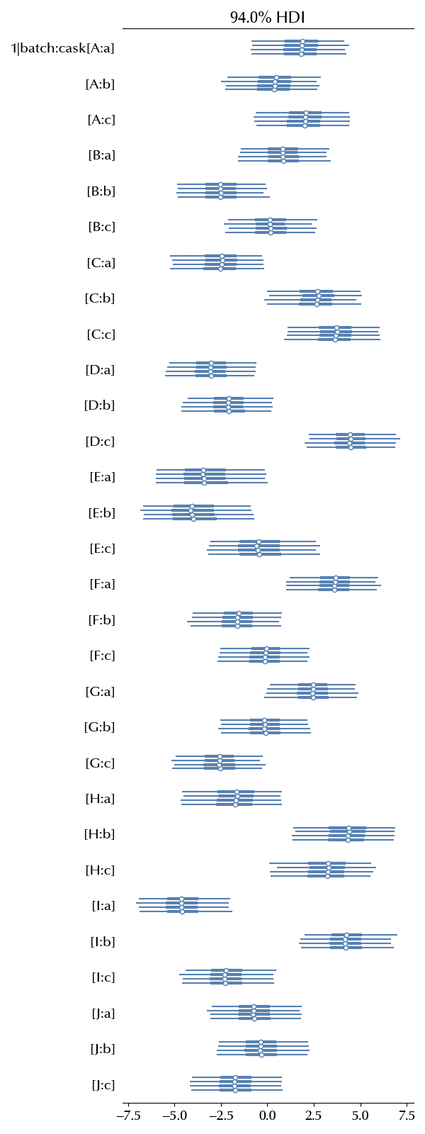 az.plot_forest(idata, var_names=['1|batch:cask'])